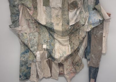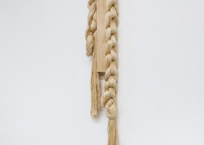 L’œuvre de Frances Trombly s’attache à libérer la fibre et la toile de leur fonction première. Ce qui est ordinairement un simple support devient protagoniste, prenant une présence énigmatique, parfois inquiétante, parfois délicate. Entre peinture, sculpture et textile, Trombly interroge le domestique et l’artisanal, et propose une réflexion sur la valeur intrinsèque de la matière brute, tout en déstabilisant notre regard quotidien.