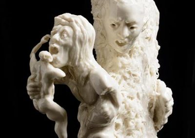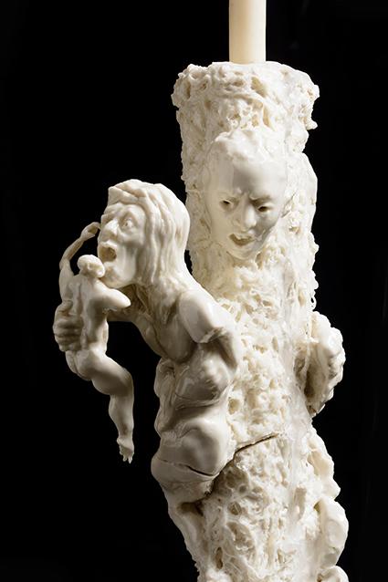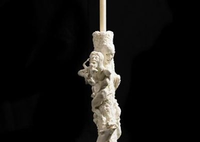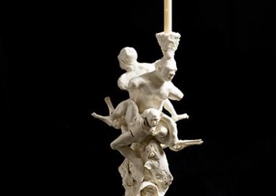 Leonardo Trombetta redéfinit la fonction de l’objet utilitaire. Ses chandeliers en porcelaine deviennent des architectures suspendues, des jeux d’ombre et de lumière, oscillant entre sculpture et rituel esthétique. Trombetta interroge la tension entre utilité et poésie, lumière et obscurité, et nous force à repenser notre perception du quotidien.
